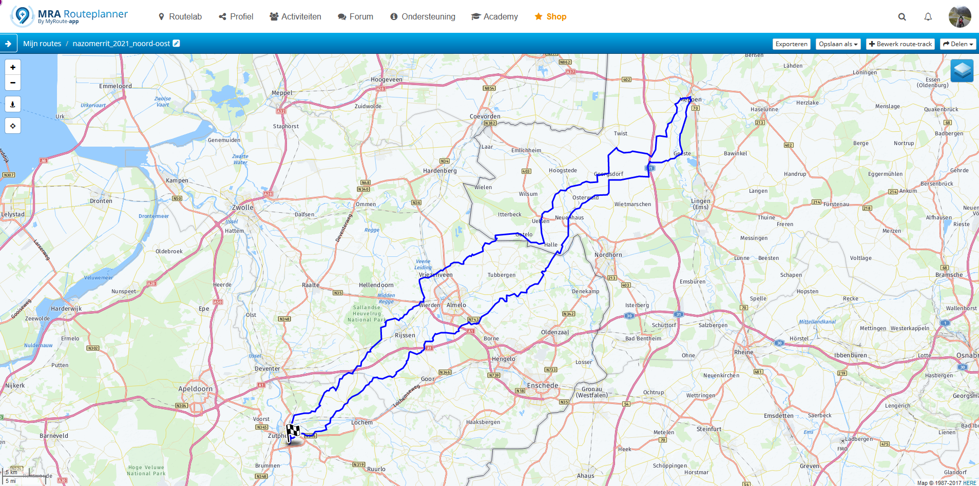 Deel 1, tot Meppen is 129 km.